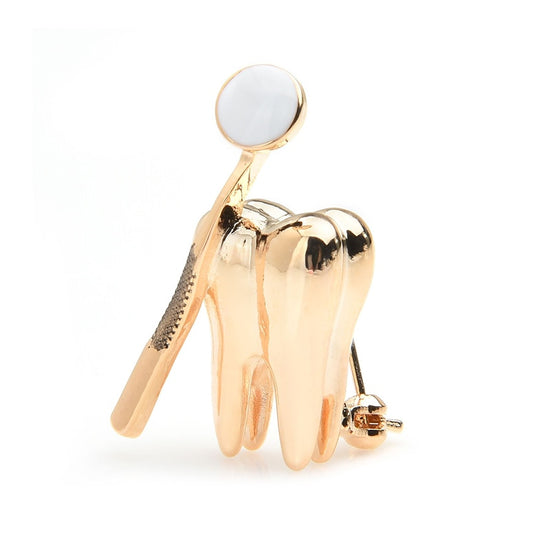 Add a little sparkle to your outfit with the beautiful gold tooth brooch.